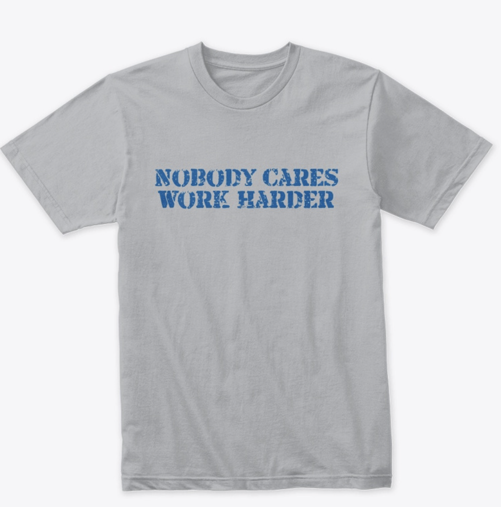 This is why I created theNobody Cares Work Harder t-shirt for my copywriting and jiu-jitsu followers and competitors.