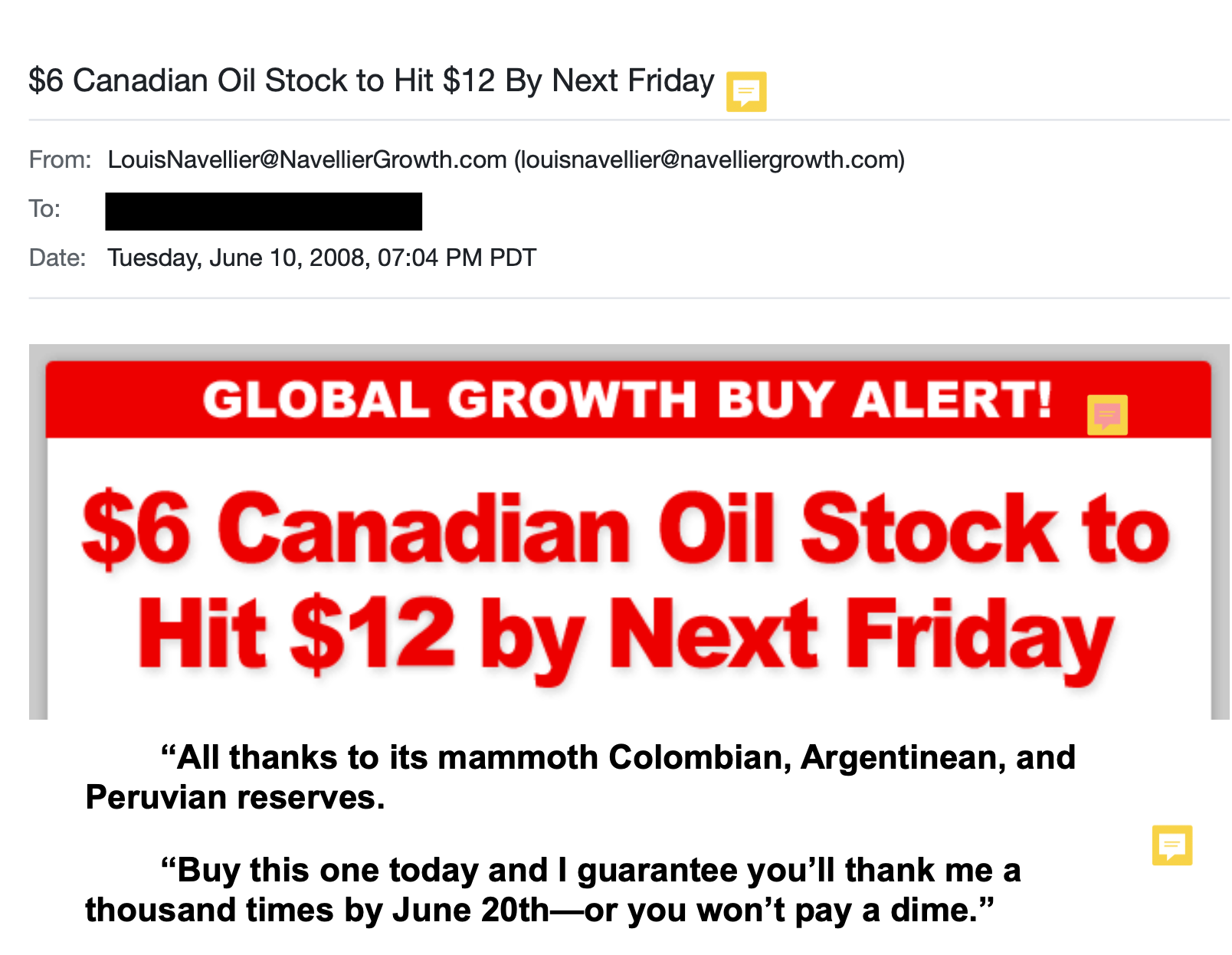 If you'd like to learn more about how I used my "yes" formula to create the highly successful "$6 Canadian Oil Stock to Hit $13 by Friday" promotion, click here.