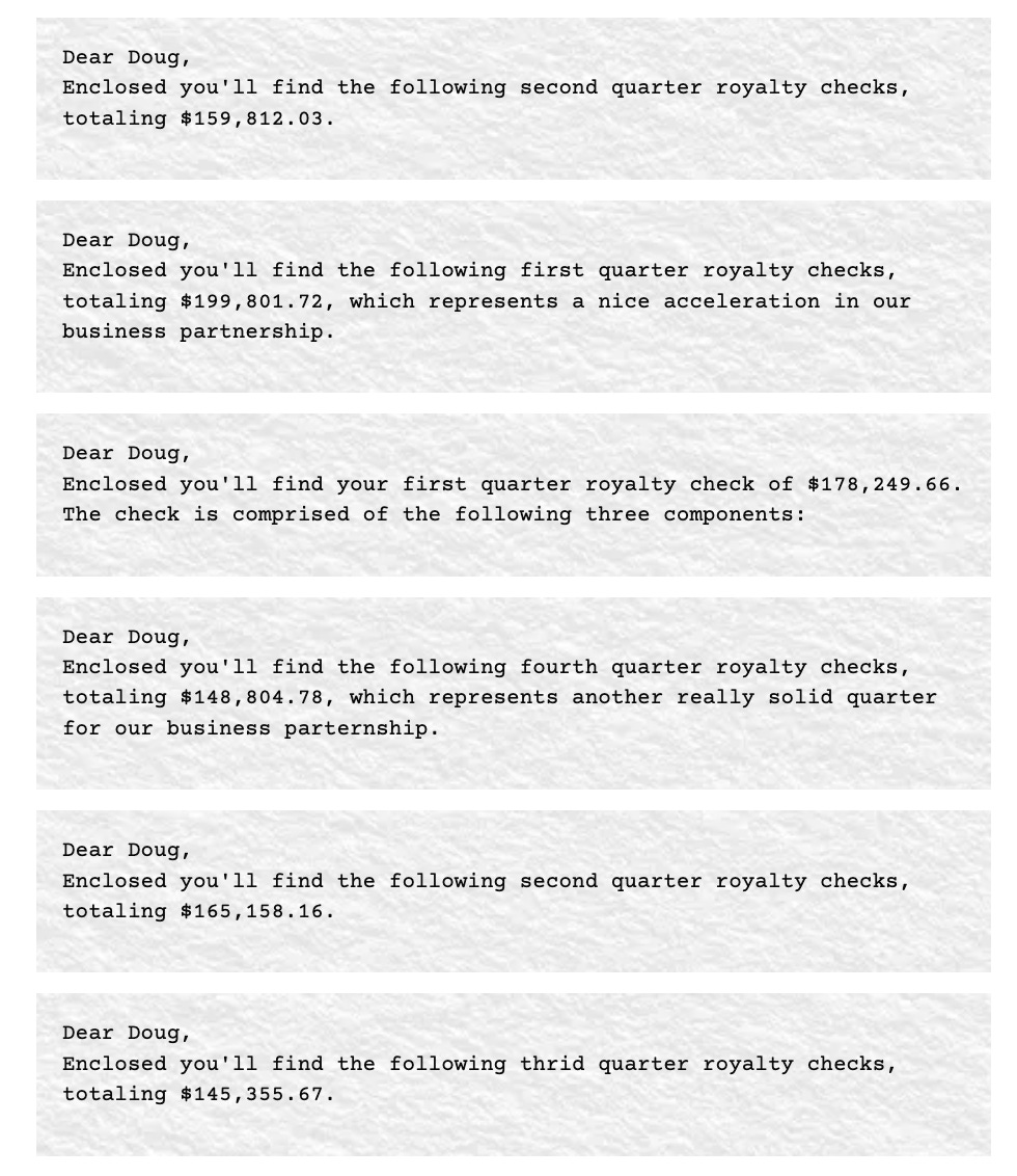 Imagine getting royalty checks like these…