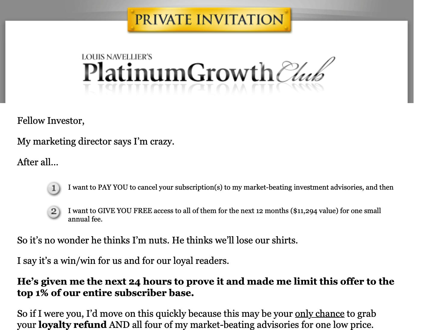 how I did it in this multi-million email that sold Louis Navellier's Platinum Growth Club.