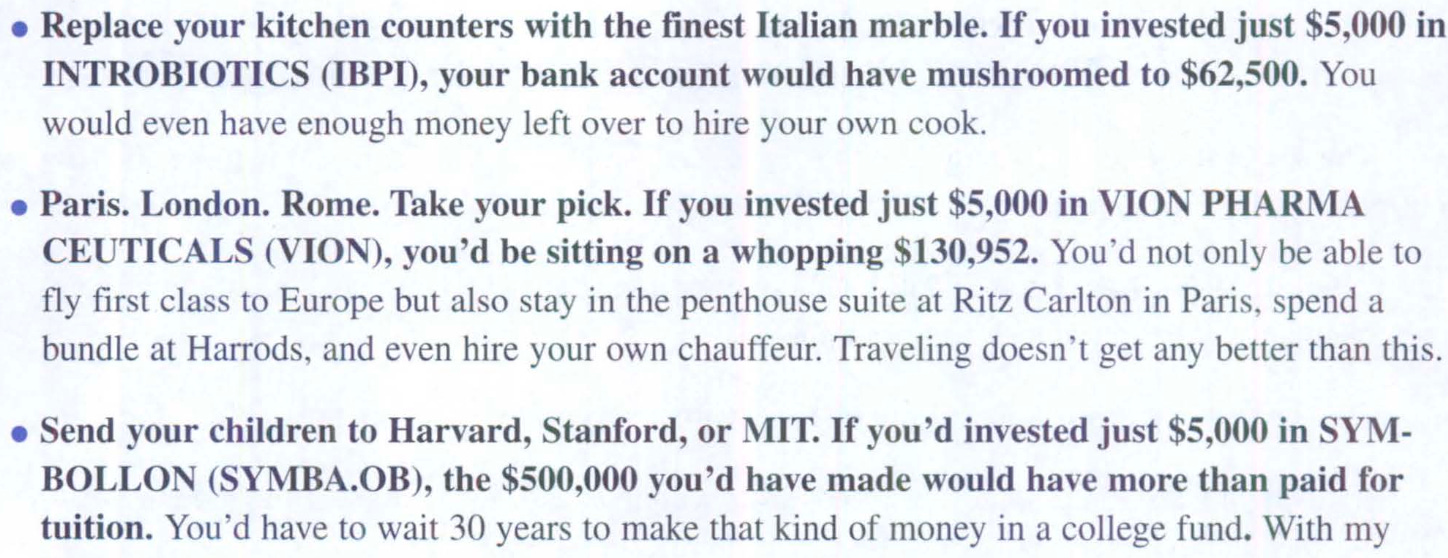Every product or service has its target audience. Mine were investors who subscribed to investment newsletters and trading services. People who want to get rich and are in search of the secret stock or system that will make them rich.