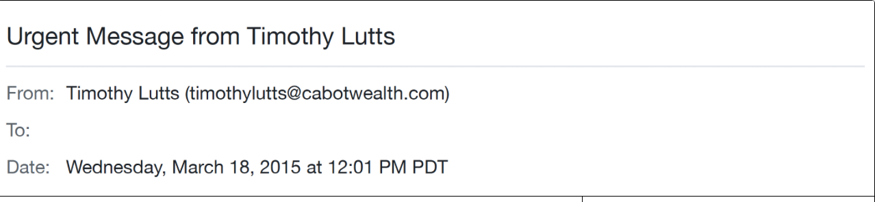 In my winning email, "Urgent Message from Tim Lutts," you'll see how I continue to add a sense of urgency to this messaging, line by line, including using action-oriented