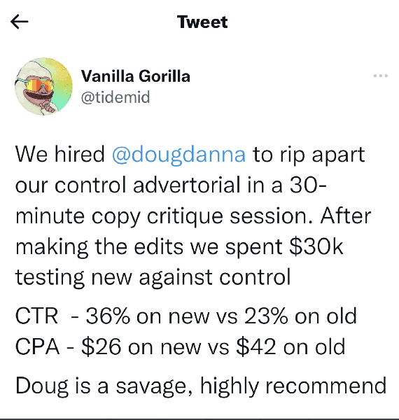 To be sure, there are a million “copywriters” on Twitter, Facebook, and LinkedIn that would gladly look at your copy for a lot less than I charge.