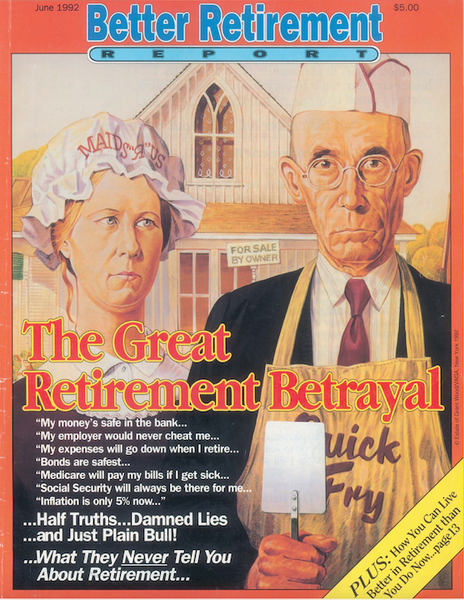 I wrote "The Great Retirement Betrayal" in 1991 as a 20-page magalog for Phillips Investment Resources (now InvestorPlace) to promote The Retirement Letter newsletter, edited by Pete Dickinson.